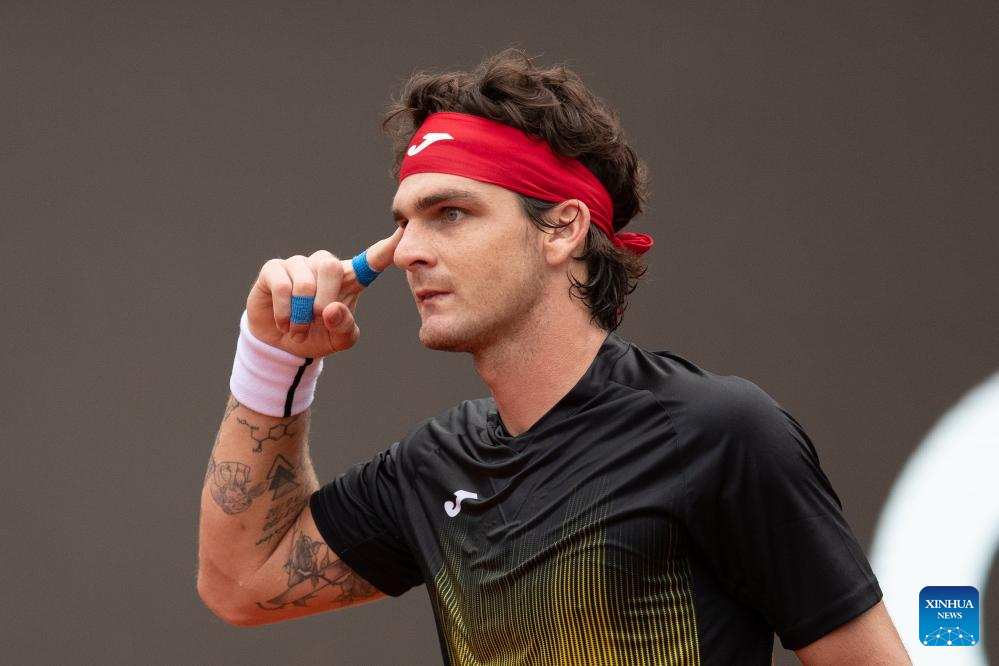 Thiago Seyboth Wild of Brazil reacts during the round 16 match against Jaume Antoni Munar Clar of Spain at the 2024 ATP500 Rio Open at Jockey Club Brasileiro in Rio de Janeiro, Brazil, Feb. 22, 2024. (Xinhua/Wang Tiancong)