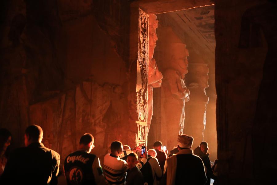 Tourists visit the Great Temple of Abu Simbel during the Sun Festival in Aswan, Egypt, Feb. 22, 2024. (Xinhua/Sui Xiankai)Tourists visit the Great Temple of Abu Simbel during the Sun Festival in Aswan, Egypt, Feb. 22, 2024. (Xinhua/Sui Xiankai)This photo taken on Feb. 22, 2024 shows rays of morning sun reaching into the Great Temple of Abu Simbel during the Sun Festival in Aswan, Egypt. (Xinhua/Sui Xiankai)Tourists visit the Great Temple of Abu Simbel during the Sun Festival in Aswan, Egypt, Feb. 22, 2024. (Xinhua/Sui Xiankai)This photo taken on Feb. 21, 2024 shows the illuminated Great Temple of Abu Simbel in Aswan, Egypt. (Xinhua/Sui Xiankai)Tourists visit the Great Temple of Abu Simbel during the Sun Festival in Aswan, Egypt, Feb. 22, 2024. (Xinhua/Sui Xiankai)■