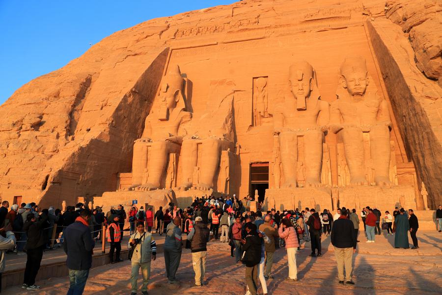 Tourists visit the Great Temple of Abu Simbel during the Sun Festival in Aswan, Egypt, Feb. 22, 2024. (Xinhua/Sui Xiankai)