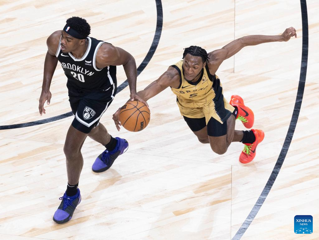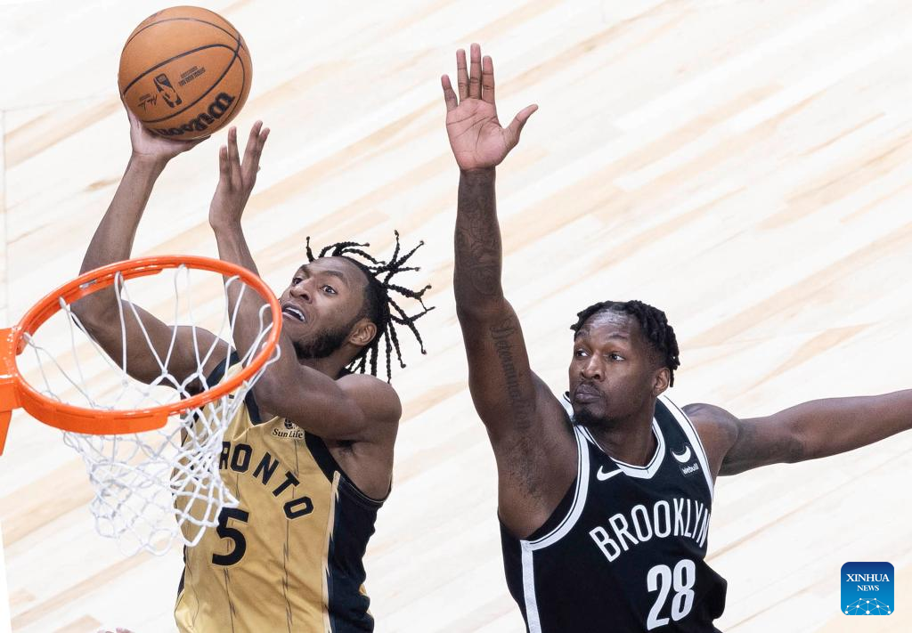 TORONTO, Feb. 22 (Xinhua) -- Toronto Raptors starters outscored the Brooklyn Nets 87-51 on Thursday night in a 121-93 victory to kick off the second half of the NBA regular season after last week's All-Star weekend.