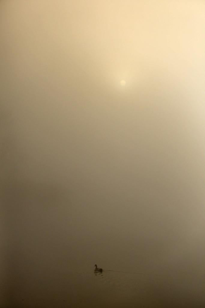 A duck is seen in the water as the city is shrouded in fog in Kathmandu, Nepal, Feb. 23, 2024. (Photo by Sulav Shrestha/Xinhua) ■