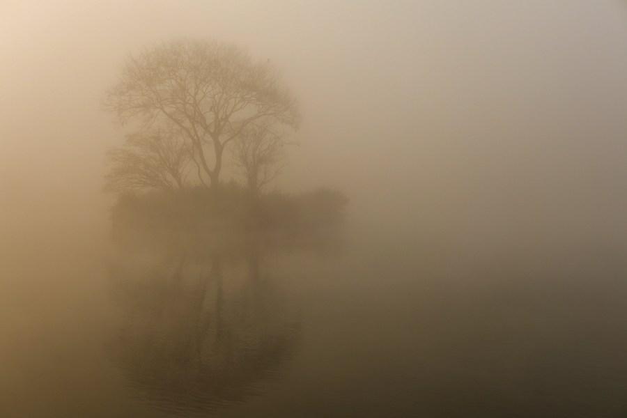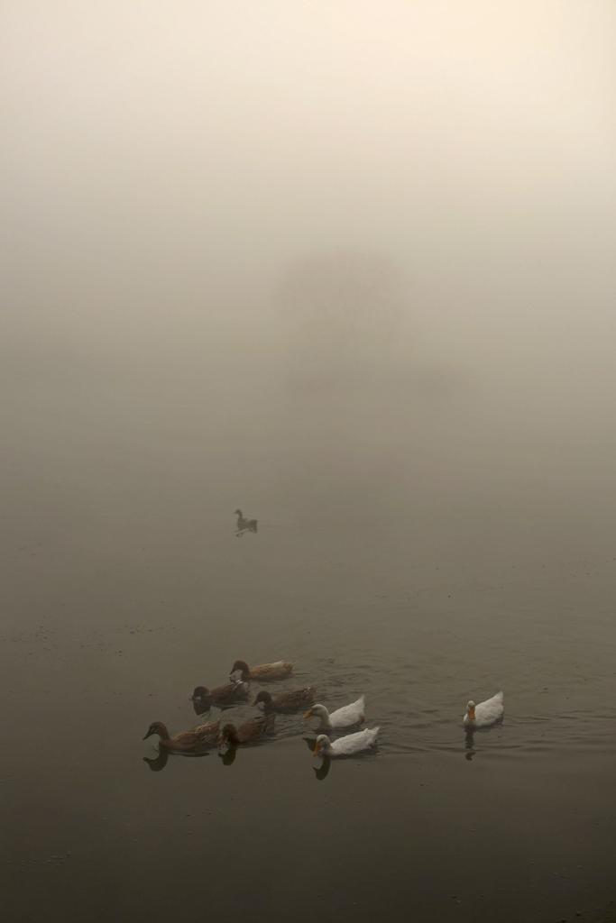 Ducks are seen in the water as the city is shrouded in fog in Kathmandu, Nepal, Feb. 23, 2024. (Photo by Sulav Shrestha/Xinhua)