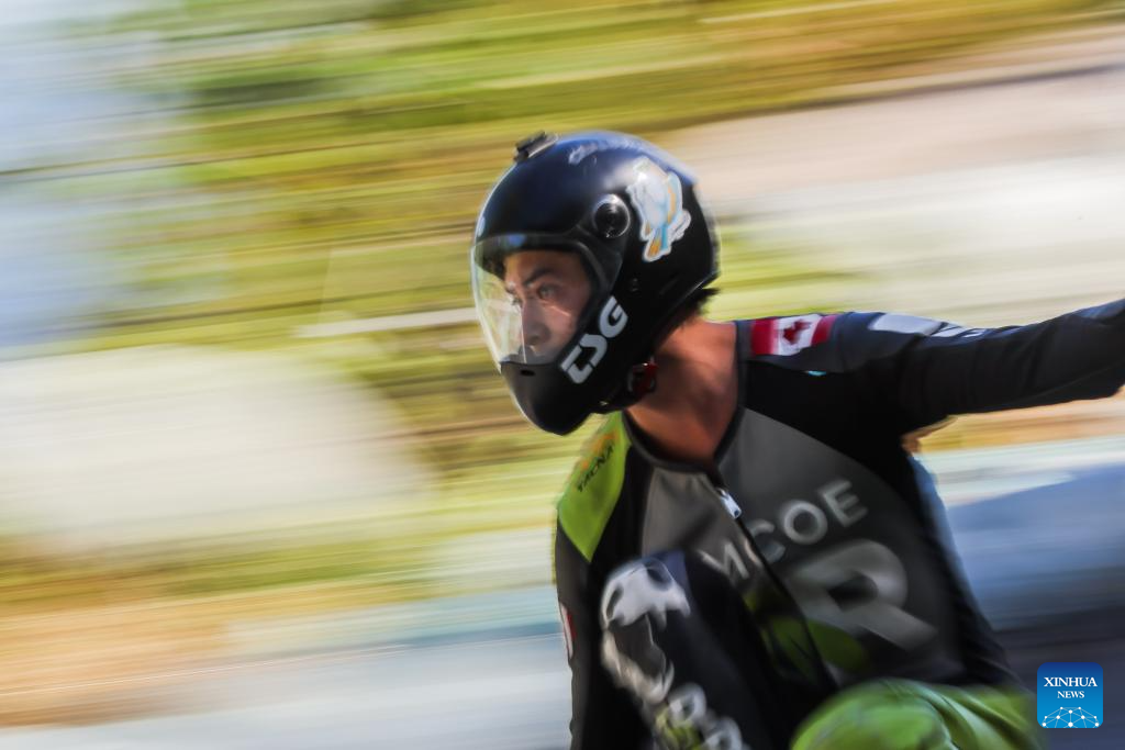 Canada's Matthew King competes during the 1st round of the men's skateboarding at the Downhill Skateboarding and Street Luge World Championships in Cavite Province, the Philippines, on Feb. 24, 2024. (Xinhua/Rouelle Umali)
