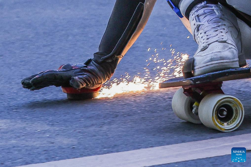 Spain's Marc Escoda Turro competes during the 1st round of the men's skateboarding at the Downhill Skateboarding and Street Luge World Championships in Cavite Province, the Philippines, on Feb. 24, 2024. (Xinhua/Rouelle Umali)