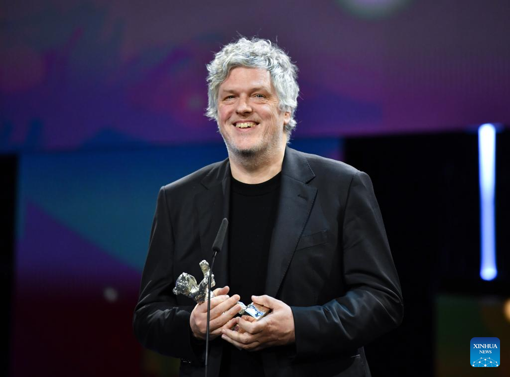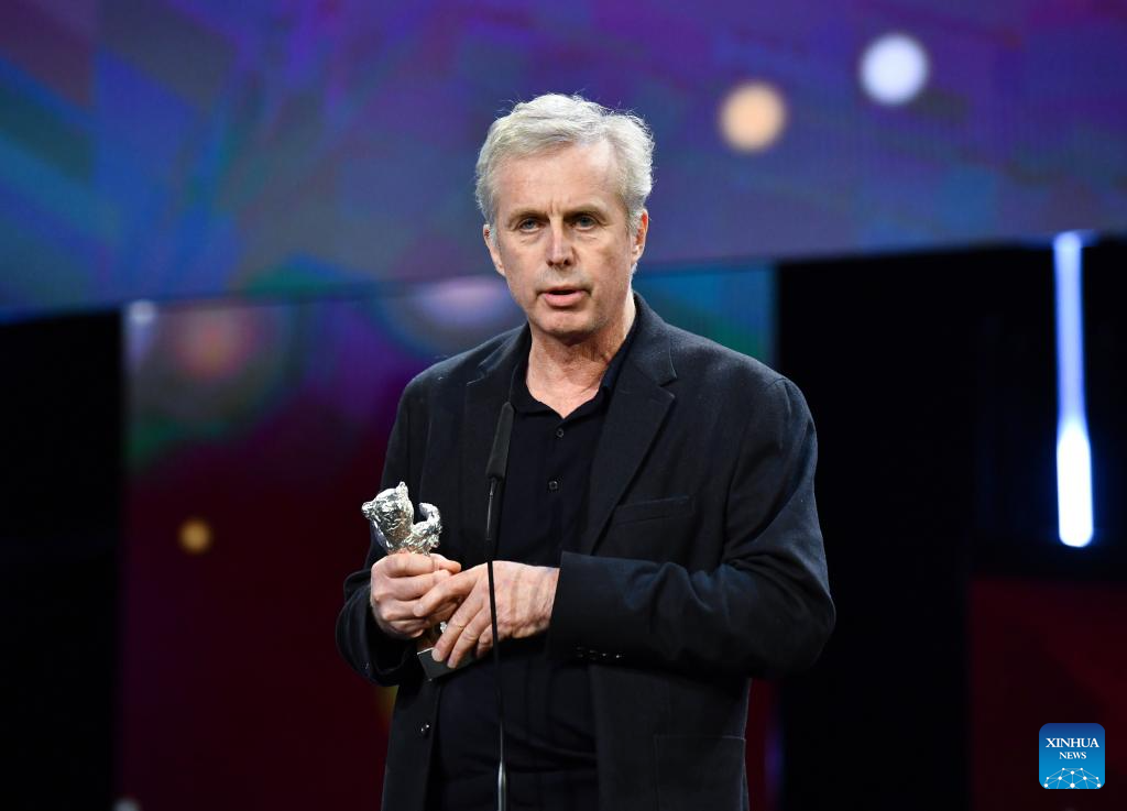 Austrian cameraman Martin Gschlacht speaks after receiving the Silver Bear for Outstanding Artistic Contribution during the 74th Berlin International Film Festival in Berlin, Germany, Feb. 24, 2024. (Xinhua/Ren Pengfei)
