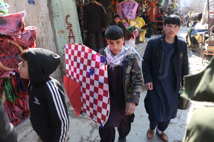 KABUL, Feb. 25 (Xinhua) -- People are busy selecting their favourite kites in Kabul, capital of Afghanistan, as Spring is a good time for the time-honoured sport.