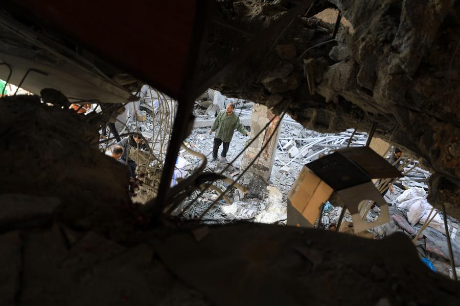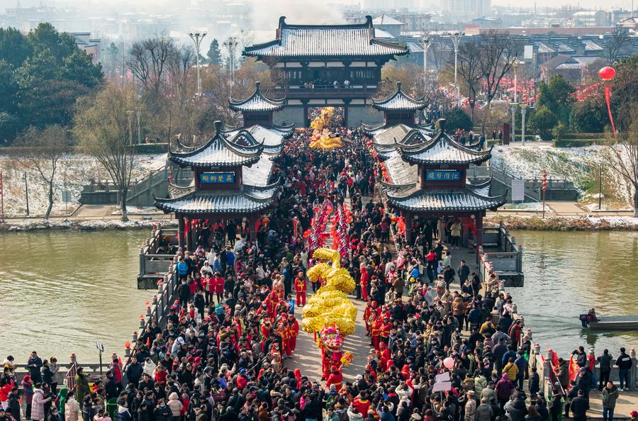 This photo taken on Feb. 24, 2024 shows a view of the butter sculpture show in Taer Monastery in Huangzhong District of Xining, capital of northwest China's Qinghai Province. A butter sculpture show was held at the Taer Monastery on Saturday, which marks the Chinese Lantern Festival. The butter sculptures are handmade by lamas in shapes of Buddha figurines, trees, flowers, birds and animals. (Xinhua/Zhang Long)Folk artists perform during a temple fair held in Xunxian County of central China's Henan Province, Feb. 25, 2024. Local Shehuo performing teams participated in a temple fair in Xunxian on Sunday, one day after the Chinese Lantern Festival. Shehuo is a traditional carnival-like folk celebration, featuring performances like dragon dance, lion dance, traditional Chinese opera, drum playing and other folk performances that may vary in different regions. (Xinhua/Zhu Xiang)An aerial drone photo taken on Feb. 25, 2024 shows performers walking past the Taiping Bridge in Quanjiao County, Chuzhou City of east China's Anhui Province. The annual folk activity in Quanjiao was held on the 16th day of the first month on Chinese lunar calendar. (Photo by Liu Yucai/Xinhua)Children try dragon dance with the help of their teacher at a kindergarten in Changxing County of Huzhou City, east China's Zhejiang Province, Feb. 25, 2024. Children attended cultural activities to learn and experience traditional culture of the Chinese Lunar New Year here as the first class of a new semester. (Xinhua/Xu Yu)An aerial drone photo taken on Feb. 25, 2024 shows a view of the Tianzi Mountain after rain and snow at Zhangjiajie National Forest Park in central China's Hunan Province. (Photo by Wu Yongbing/Xinhua)People make handicrafts during a celebration of the Lantern Festival at the Chinese Cultural Center in Berlin, Germany, Feb. 24, 2024. (Xinhua/Ren Pengfei)A man is seen among the rubble after an Israeli airstrike in the southern Gaza Strip city of Rafah, Feb. 24, 2024. At least eight Palestinians, including a child, were killed in an Israeli airstrike targeting a house in the city of Rafah in the southern Gaza Strip, Palestinian medical sources said Saturday. (Photo by Yasser Qudih/Xinhua)Team China celebrate with the trophy during the awarding ceremony for the men's team at the ITTF World Team Table Tennis Championships Finals Busan 2024 in Busan, South Korea, Feb. 25, 2024. (Xinhua/Yang Shiyao)■