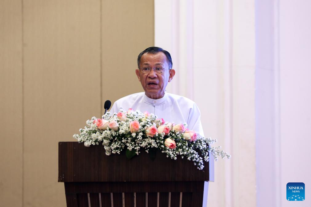 Myanmar's Union Minister for Investment and Foreign Economic Relations Dr. Kan Zaw speaks at the opening event of a seminar on the understanding and implementation of the Regional Comprehensive Economic Partnership (RCEP) agreement in Nay Pyi Taw, Myanmar, Feb. 26, 2024. The three-day seminar was organized under the Lancang-Mekong Cooperation framework. It kicked off here on Monday, bringing representatives from six Lancang-Mekong countries together. (Photo by Myo Kyaw Soe/Xinhua)