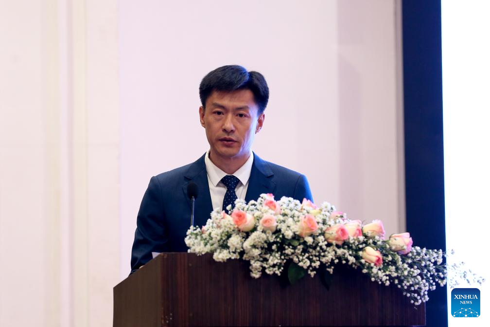 Zheng Zhihong, minister counselor of the Chinese embassy in Myanmar, speaks at the opening event of a seminar on the understanding and implementation of the Regional Comprehensive Economic Partnership (RCEP) agreement in Nay Pyi Taw, Myanmar, Feb. 26, 2024. The three-day seminar was organized under the Lancang-Mekong Cooperation framework. It kicked off here on Monday, bringing representatives from six Lancang-Mekong countries together. (Photo by Myo Kyaw Soe/Xinhua)