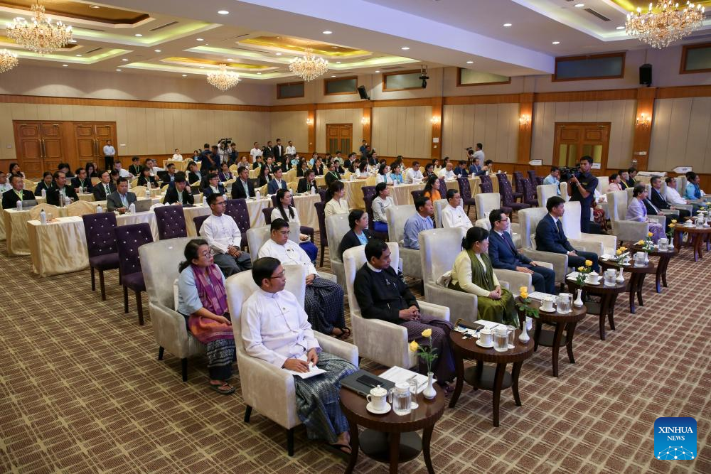 Participants attend a seminar on the understanding and implementation of the Regional Comprehensive Economic Partnership (RCEP) agreement in Nay Pyi Taw, Myanmar, Feb. 26, 2024. The three-day seminar was organized under the Lancang-Mekong Cooperation framework. It kicked off here on Monday, bringing representatives from six Lancang-Mekong countries together. (Photo by Myo Kyaw Soe/Xinhua)