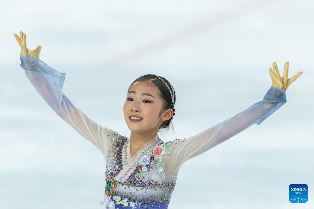 Jin Shuxian of Sichuan performs during the women single free skating of figure skating event at China's 14th National Winter Games in Hulun Buir, north China's Inner Mongolia Autonomous Region, Feb. 25, 2024. (Xinhua/Huang Wei)