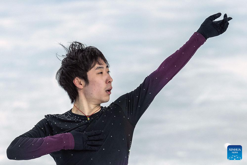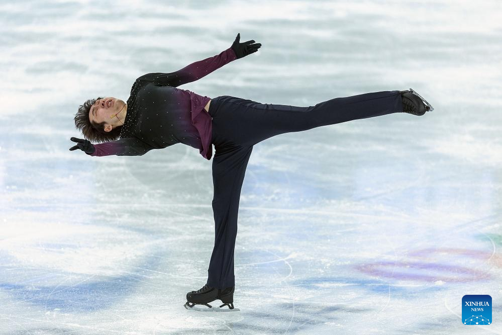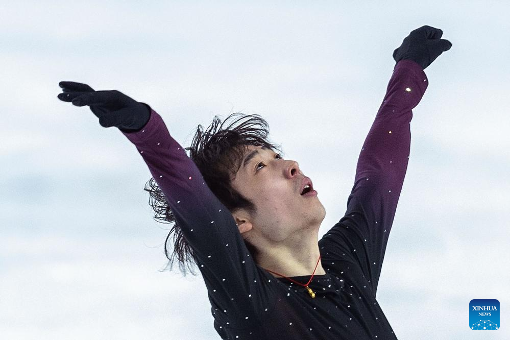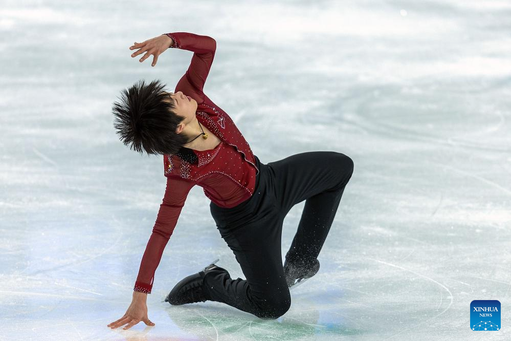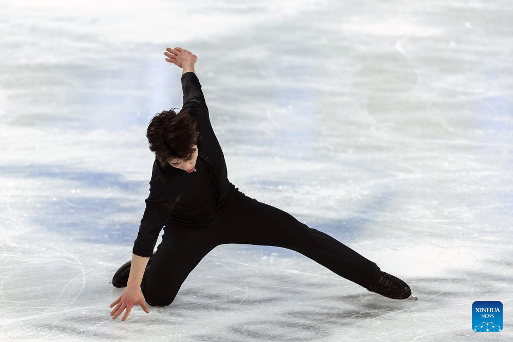 Dai Dawei of Guangdong performs during the men single free skaing of figure skating event at the China's 14th National Winter Games in Hulun Buir, north China's Inner Mongolia Autonomous Region, Feb. 26, 2024. (Xinhua/Huang Wei)