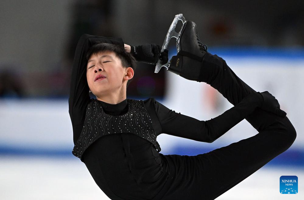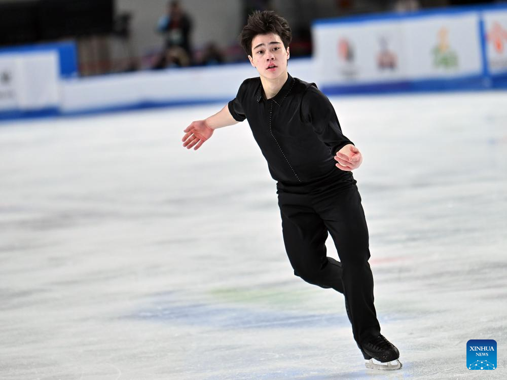 Jin Boyang of Beijing performs during the men single free skaing of figure skating event at the China's 14th National Winter Games in Hulun Buir, north China's Inner Mongolia Autonomous Region, Feb. 26, 2024. (Xinhua/Huang Wei)