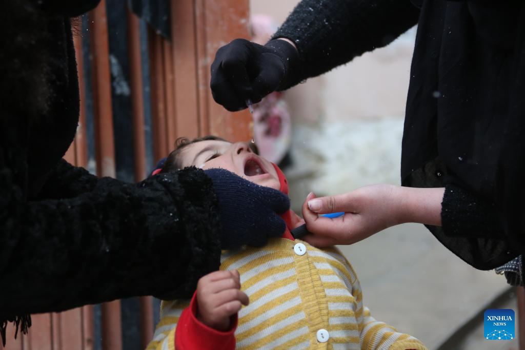 In the four-day anti-polio drive, around 7.6 million children under 5 are expected to receive the immunity doses against the crippling disease in the country. (Photo by Saifurahman Safi/Xinhua)