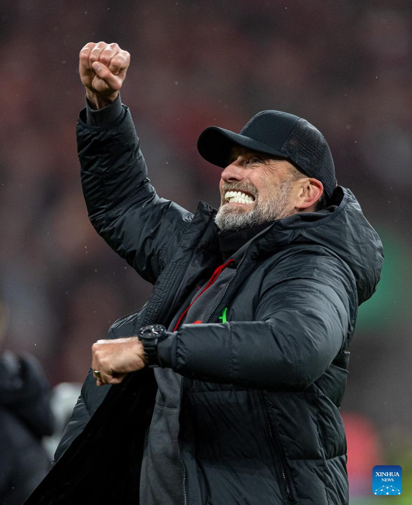 (240226) -- LONDON, Feb. 26, 2024 (Xinhua) Liverpool's manager Jurgen Klopp celebrates after the English Football League Cup final match between Chelsea and Liverpool in London, Britain, on Feb. 25, 2024. (Xinhua)