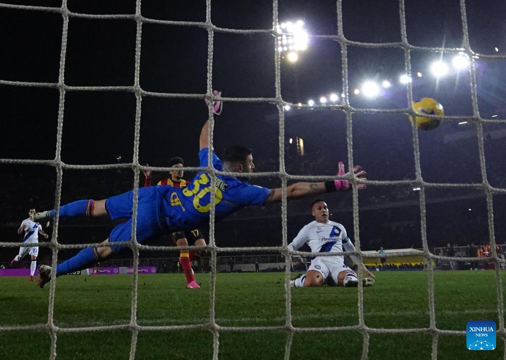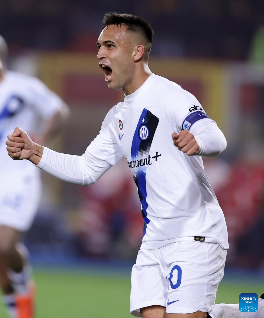 ROME, Feb. 25 (Xinhua) -- Lautaro Martinez took his total Serie A goal tally to 101 by bagging a brace on Sunday, as Inter Milan humiliated Lecce 4-0 away.