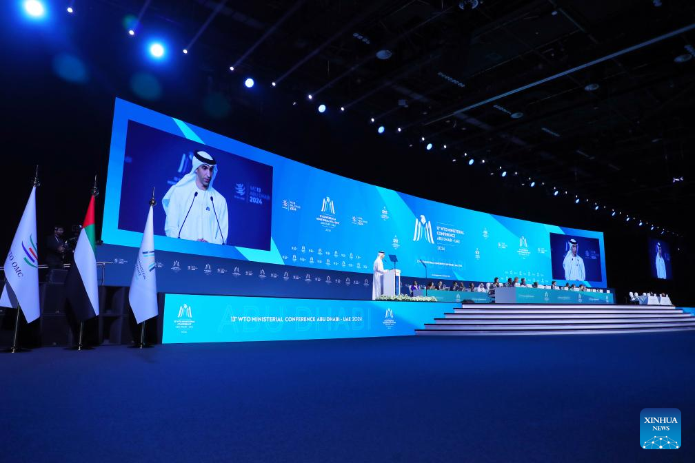 ABU DHABI, Feb. 26 (Xinhua) -- The four-day 13th Ministerial Conference (MC13) of the World Trade Organization (WTO) kicked off here on Monday in the capital of the United Arab Emirates (UAE) with ministers of economy, trade, and development from various countries, as well as representatives from global economic and trade organizations attending the event.
