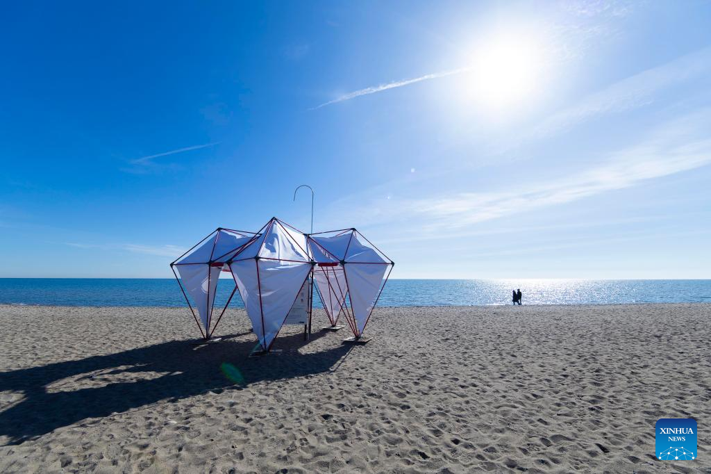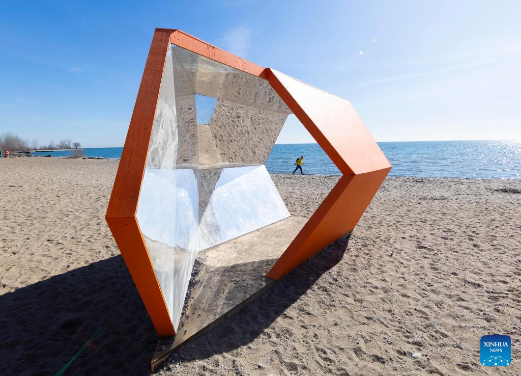 The art installation "Nova" is seen at the public exhibition of the 2024 Winter Stations international design competition in Toronto, Canada, on Feb. 26, 2024. Winter Stations is a single-stage international design competition held annually in Toronto. (Photo by Zou Zheng/Xinhua)