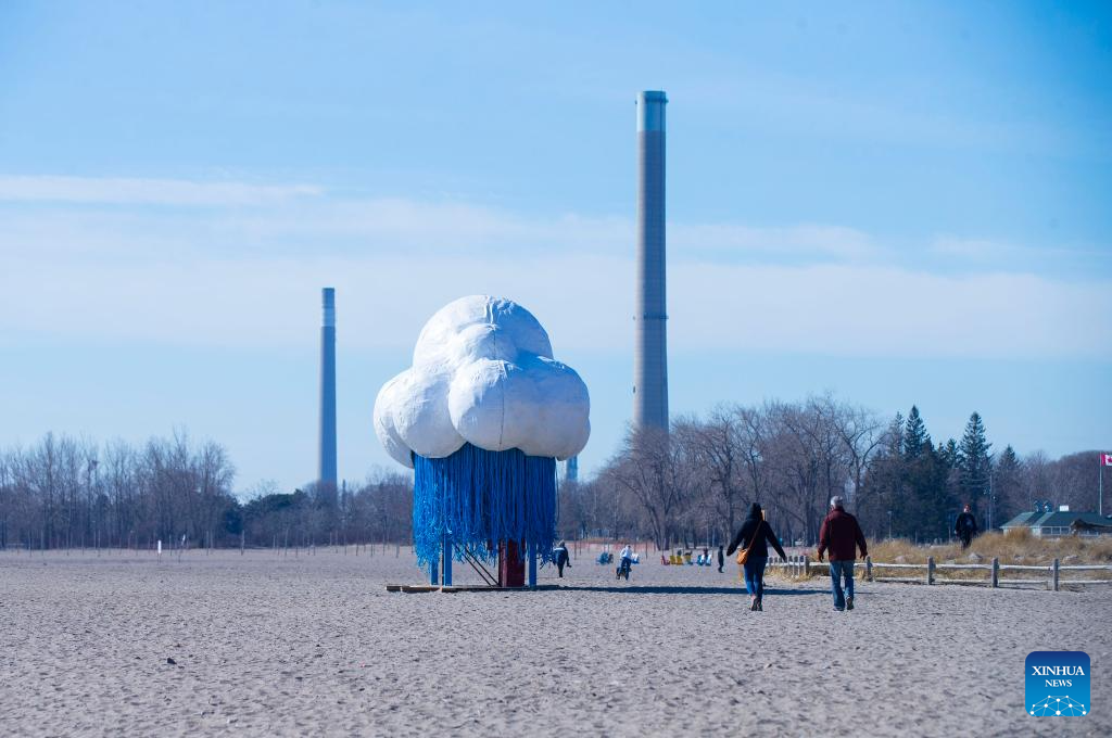 The art installation "Nimbus" is seen at the public exhibition of the 2024 Winter Stations international design competition in Toronto, Canada, on Feb. 26, 2024. Winter Stations is a single-stage international design competition held annually in Toronto. (Photo by Zou Zheng/Xinhua)