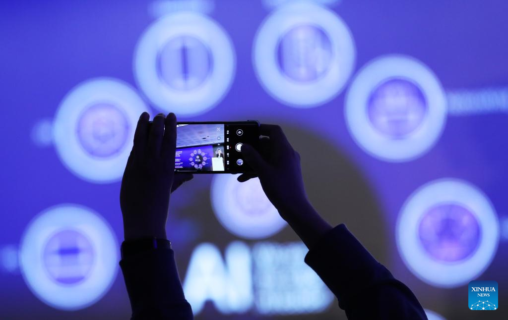 A participant takes a photo during a forum on the theme of "Computing Power Network: Smarter Network for a Smarter World" during the Mobile World Congress 2024 in Barcelona, Spain, Feb. 27, 2024. (Xinhua/Gao Jing)