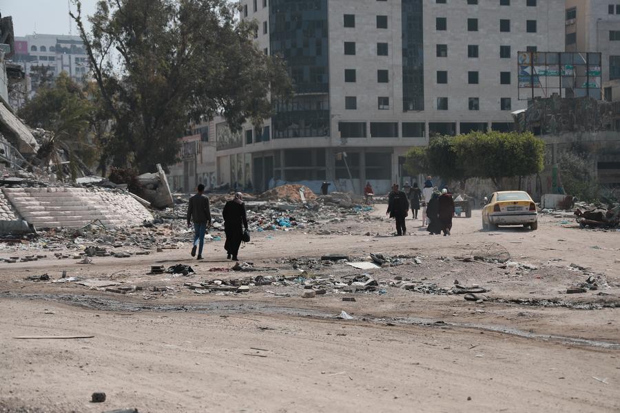 People walk past destroyed buildings in Gaza City, Feb. 26, 2024. (Photo by Malik Atallah/Xinhua)Destroyed buildings are pictured in Gaza City, Feb. 26, 2024. (Photo by Malik Atallah/Xinhua)Destroyed buildings are pictured in Gaza City, Feb. 26, 2024. (Photo by Malik Atallah/Xinhua)Destroyed buildings are pictured in Gaza City, Feb. 26, 2024. (Photo by Malik Atallah/Xinhua)People walk past destroyed buildings in Gaza City, Feb. 26, 2024. (Photo by Malik Atallah/Xinhua)■