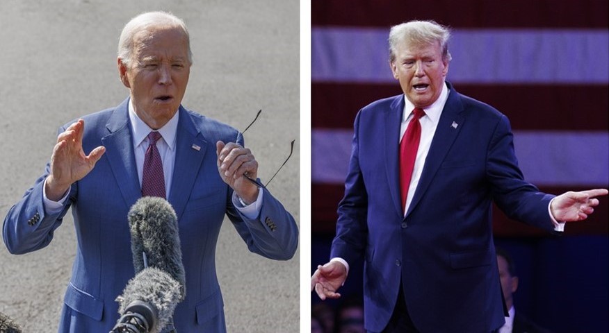 This combined photo shows U.S. President Joe Biden (L) and former U.S. President Donald Trump delivering speeches on different occasions. (Xinhua)