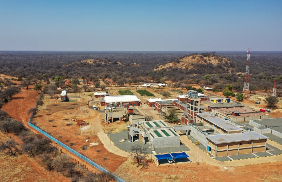 This aerial photo taken on Sept. 12, 2023, shows a water treatment plant in Mahalapye, Botswana. (Xinhua/Li Yahui)