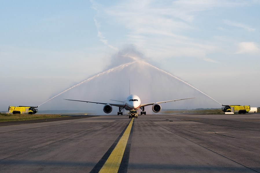 A Boeing B787-9 Dreamliner of Shanghai Airlines, a subsidiary of China Eastern Airlines, arrives at the Liszt Ferenc International Airport in Budapest, Hungary, on June 7, 2019. (Xinhua/Budapest Liszt Ferenc International Airport)