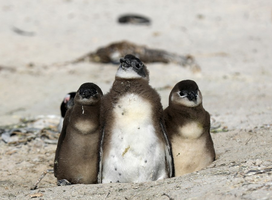African penguins are pictured on the beach at Boulders Penguin Colony, Simon's Town, South Africa, Aug. 12, 2023. (Xinhua/Dong Jianghui)