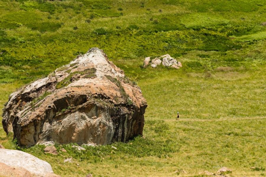 A tourist visits the Golden Gate Highlands National Park in Free State province, South Africa, Jan. 14, 2024. (Xinhua/Zhang Yudong)