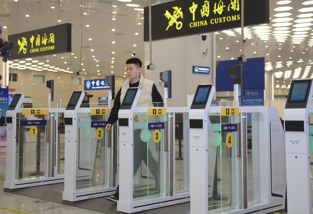 A staff member of customs checks the luggage of a Macao citizen (R), who was the first passenger to complete customs clearance after a new customs operation became effective in the Guangdong-Macao In-depth Cooperation Zone at Hengqin port, south China's Guangdong Province, March 1, 2024. (Xinhua/Liu Dawei)A staff member of customs checks the luggage of a Macao citizen, who was the first passenger to complete customs clearance after a new customs operation became effective in the Guangdong-Macao In-depth Cooperation Zone at Hengqin port, south China's Guangdong Province, March 1, 2024. (Xinhua/Lu Hanxin)A Macao citizen, who was the first passenger to complete customs clearance after a new customs operation became effective in the Guangdong-Macao In-depth Cooperation Zone, speaks to the media at Hengqin port, south China's Guangdong Province, March 1, 2024. (Xinhua/Liu Dawei)A passenger goes through customs clearance process after a new customs operation became effective in the Guangdong-Macao In-depth Cooperation Zone at Hengqin port, south China's Guangdong Province, March 1, 2024. (Xinhua/Lu Hanxin)