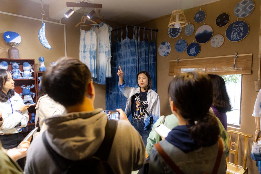 As she was looking around the village museum, an old photo of dye works caught her attention. Fascinated by this traditional craft, she decided to learn the necessary skills and go into business. By the end of 2021, she had established a tie-dying workshop and had become the inheritor of this county-level intangible cultural heritage.