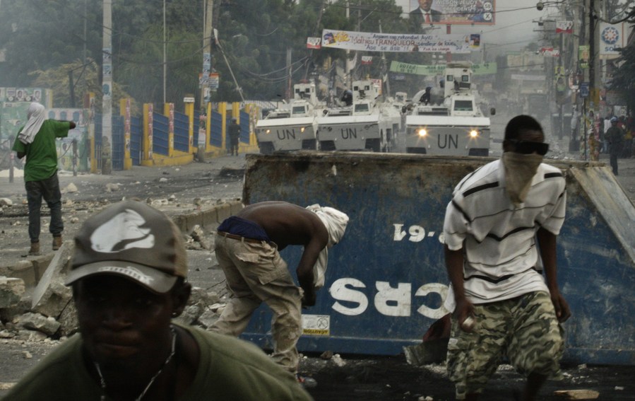Haitians clash with UN soldiers while they participate in a protest in Port-au-Prince, capital of Haiti, on Dec. 8, 2010. (Xinhua/Stringer)