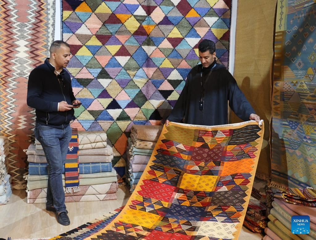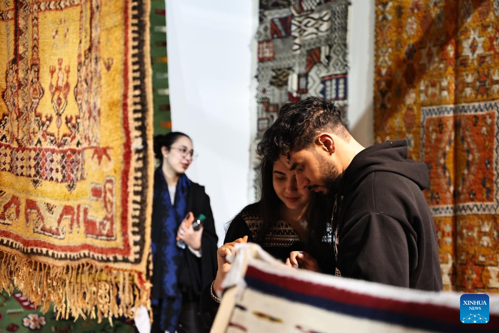 People visit the Second Morocco Carpet and Flooring Trade Show in Casablanca, Morocco, March 3, 2024. The show kicked off here on Feb. 28. (Xinhua/Huo Jing)
