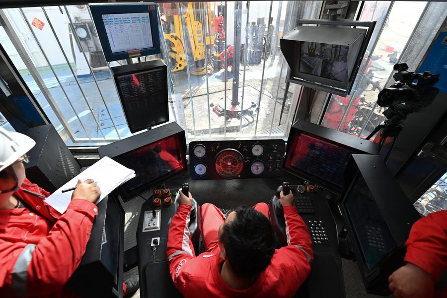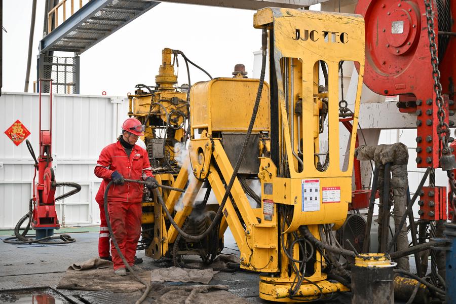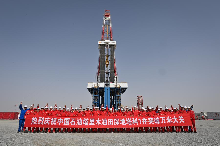 URUMQI, March 4 (Xinhua) -- The drilling of a superdeep borehole in northwest China's Xinjiang Uygur Autonomous Region reached 10,000 meters at 2:48 p.m. Monday and is going deeper, marking a breakthrough in the country's deep-Earth exploration.
