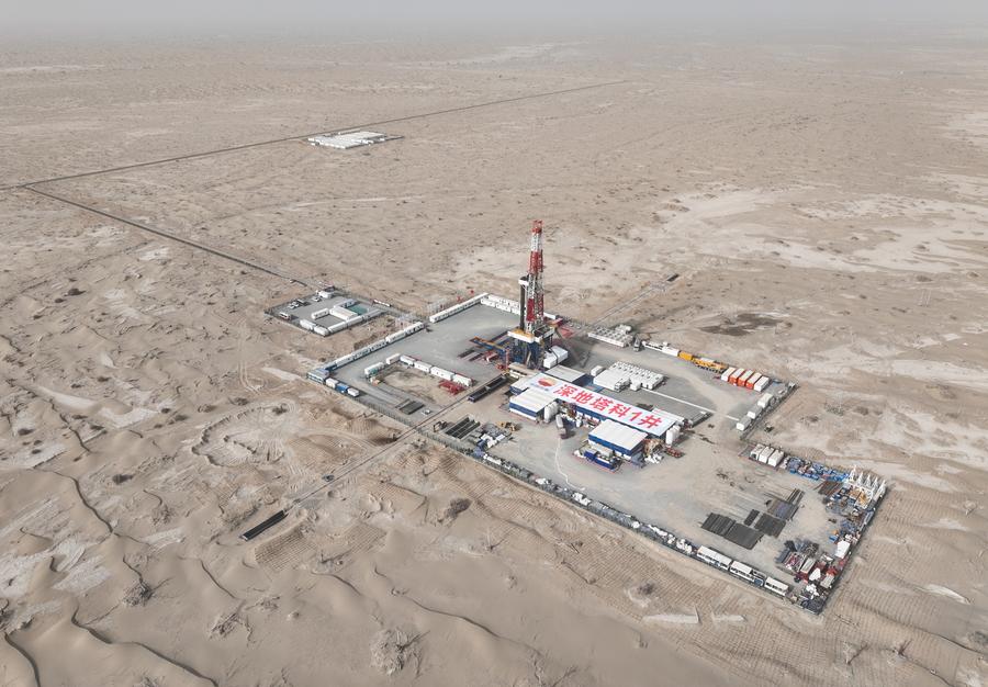 Staff members work at "Shenditake 1" borehole in the Taklimakan Desert in the Tarim Basin, northwest China's Xinjiang Uygur Autonomous Region, March 3, 2024. (Xinhua/Li Xiang)A drone photo taken on March 3, 2024 shows staff members working at "Shenditake 1" borehole in the Taklimakan Desert in the Tarim Basin, northwest China's Xinjiang Uygur Autonomous Region. (Xinhua/Li Xiang)Staff members work at "Shenditake 1" borehole in the Taklimakan Desert in the Tarim Basin, northwest China's Xinjiang Uygur Autonomous Region, March 3, 2024. (Xinhua/Li Xiang)Staff members celebrate as the drilling of the "Shenditake 1" borehole reaches 10,000 meters in the Taklimakan Desert in the Tarim Basin, northwest China's Xinjiang Uygur Autonomous Region, March 4, 2024. (Xinhua/Li Xiang)An aerial drone photo taken on March 4, 2024 shows the "Shenditake 1" borehole in the Taklimakan Desert in the Tarim Basin, northwest China's Xinjiang Uygur Autonomous Region. (Xinhua/Li Xiang)Staff members work at "Shenditake 1" borehole in the Taklimakan Desert in the Tarim Basin, northwest China's Xinjiang Uygur Autonomous Region, March 4, 2024. (Xinhua/Li Xiang)A drone photo taken on March 3, 2024 shows the "Shenditake 1" borehole in the Taklimakan Desert in the Tarim Basin, northwest China's Xinjiang Uygur Autonomous Region. (Xinhua/Li Xiang)A researcher looks at samples collected from deep earth through a microscope at "Shenditake 1" borehole in the Taklimakan Desert in the Tarim Basin, northwest China's Xinjiang Uygur Autonomous Region, March 3, 2024. (Xinhua/Li Xiang)A researcher looks at samples collected from deep earth through a microscope at "Shenditake 1" borehole in the Taklimakan Desert in the Tarim Basin, northwest China's Xinjiang Uygur Autonomous Region, March 3, 2024. (Xinhua/Li Xiang)A drone photo taken on March 2, 2024 shows the "Shenditake 1" borehole in the Taklimakan Desert in the Tarim Basin, northwest China's Xinjiang Uygur Autonomous Region. (Xinhua/Li Xiang)■