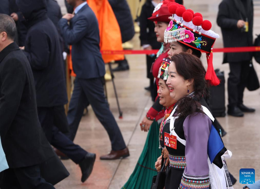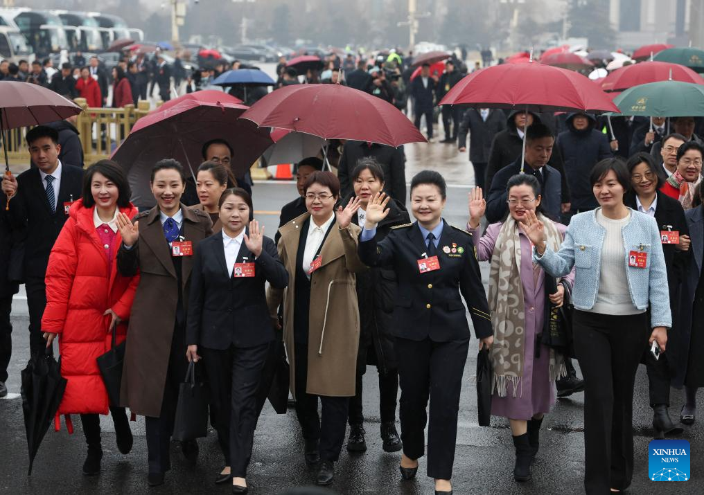 Deputies to the 14th National People's Congress (NPC) walk towards the Great Hall of the People for the opening meeting of the second session of the 14th NPC in Beijing, capital of China, March 5, 2024. (Xinhua/Li He)
