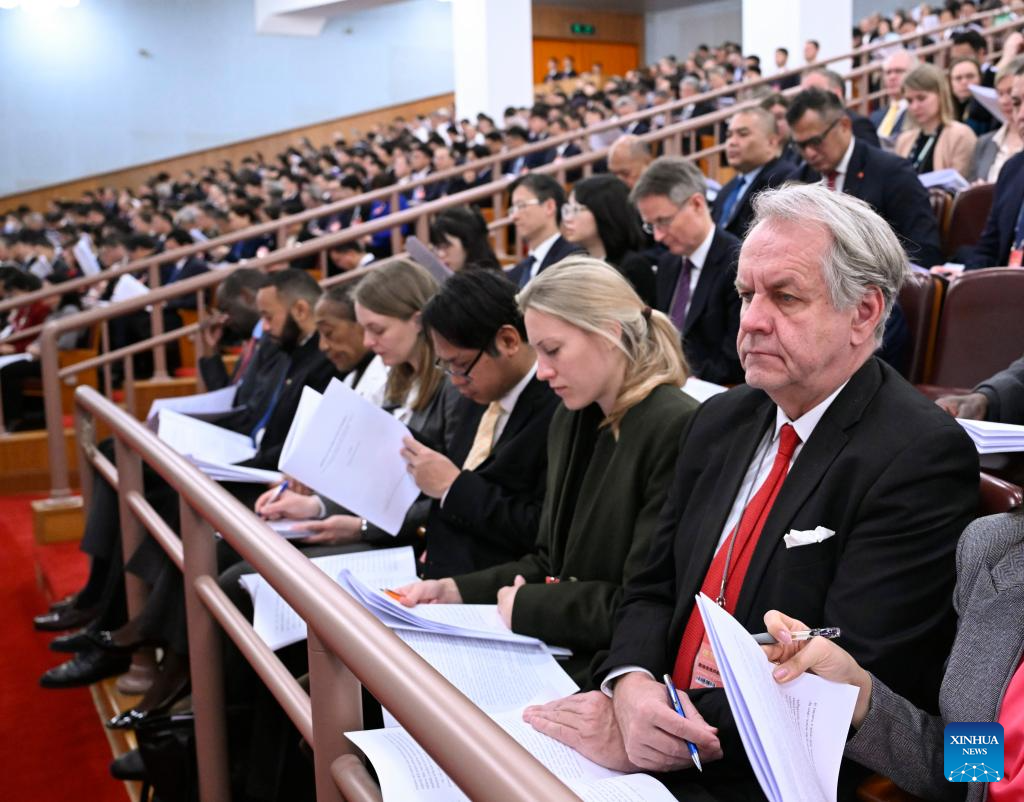 Foreign diplomatic envoys to China observe the opening meeting of the second session of the 14th National People's Congress (NPC) at the Great Hall of the People in Beijing, capital of China, March 5, 2024. (Xinhua/Shen Hong)