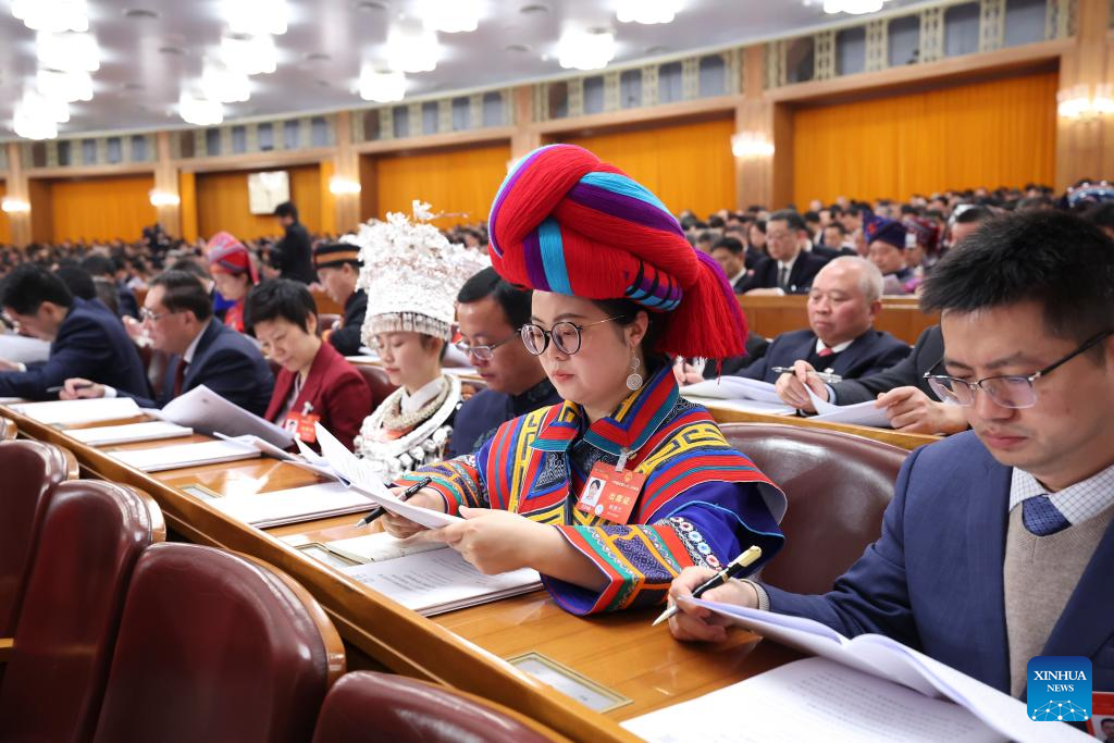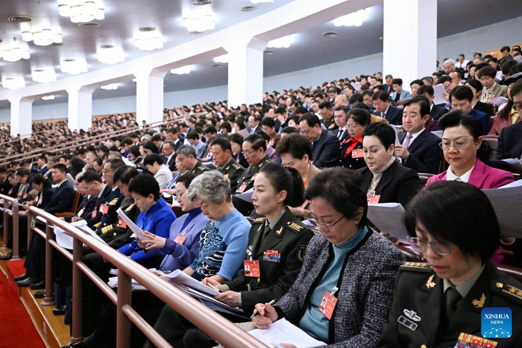 Members of the National Committee of the Chinese People's Political Consultative Conference (CPPCC) sit in on the opening meeting of the second session of the 14th National People's Congress (NPC) as non-voting participants at the Great Hall of the People in Beijing, capital of China, March 5, 2024. (Xinhua/Shen Hong)