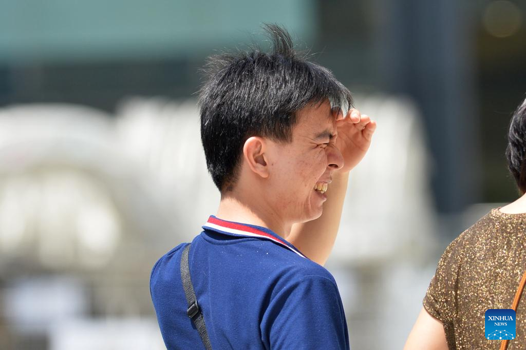 A pedestrian shades his face from the sun in Bangkok, Thailand, March 5, 2024. (Xinhua/Rachen Sageamsak)