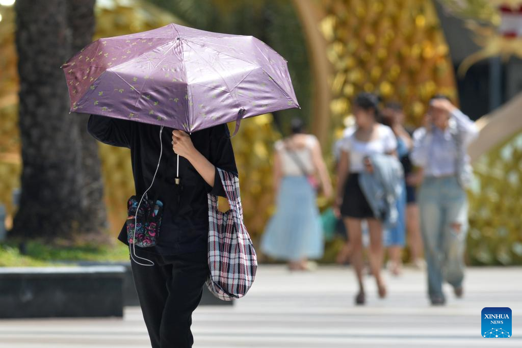 A pedestrian shields herself from the sun with an umbrella in Bangkok, Thailand, March 5, 2024. (Xinhua/Rachen Sageamsak)