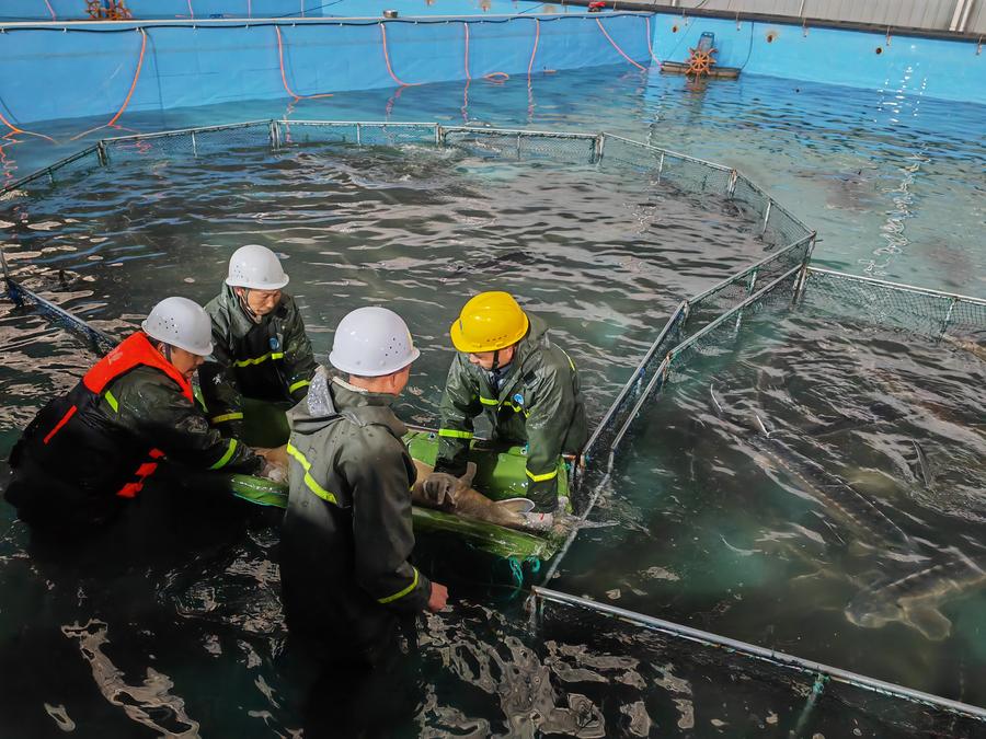 "Every day, I need to verify that about 100 sturgeons are qualified to lay eggs using professional instruments, so that they are proven healthy enough to generate high-quality caviar," said Luo Wei, an associate technician in a local sturgeon breeding base in Tianquan County of the city of Ya'an.
