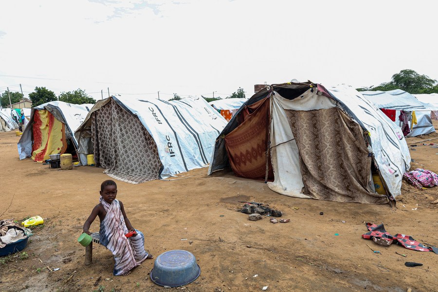 A girl sits at El-Nino IDP (internally displaced persons) camp at the Young Muslim High School in Garissa County, Kenya on Dec. 19, 2023. (Photo by John Okoyo/Xinhua)