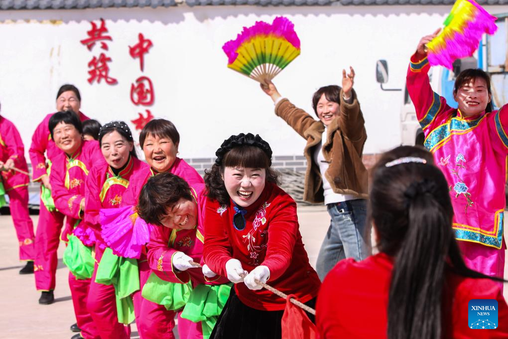 Villagers take part in a tug-of-war game in Taizizhuang Village of Boai County, Jiaozuo City, central China's Henan Province, March 8, 2024. Various activities were held across the country to celebrate International Women's Day. (Photo by Cheng Quan/Xinhua)