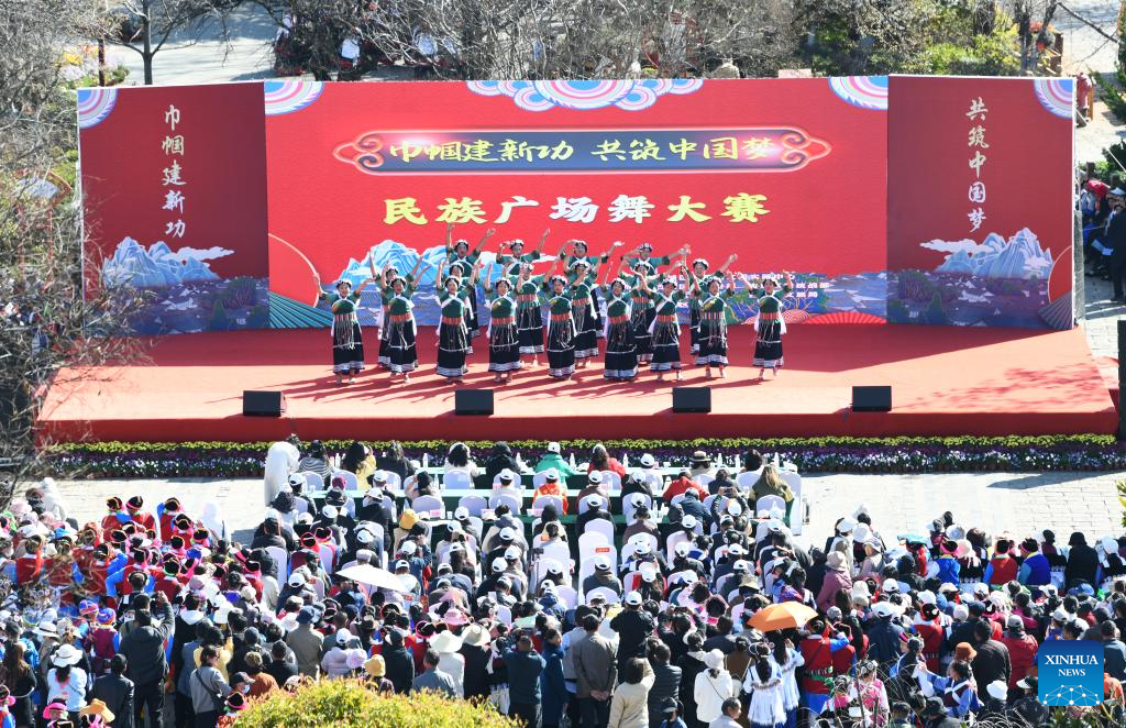 Women in ethnic costumes dance at Lijiang ancient town in southwest China's Yunnan Province, March 8, 2024. Various activities were held across the country to celebrate International Women's Day. (Photo by Zhao Qingzu/Xinhua)