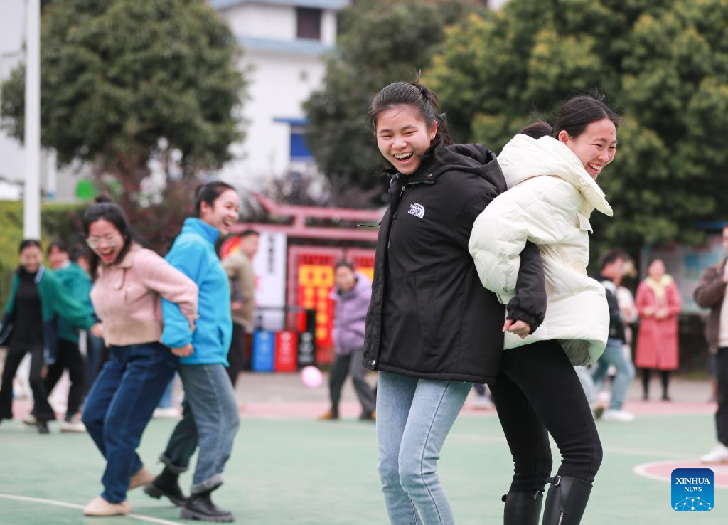 Women play games in Liangtian Village of Congjiang County, southwest China's Guizhou Province, March 8, 2024. Various activities were held across the country to celebrate International Women's Day. (Photo by Luo Jinglai/Xinhua)