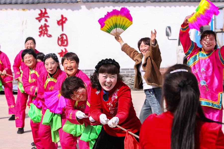 Villagers take part in a tug-of-war game in Taizizhuang Village of Boai County, Jiaozuo City, central China's Henan Province, March 8, 2024. Various activities were held across the country to celebrate International Women's Day. (Photo by Cheng Quan/Xinhua)