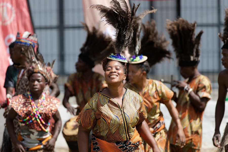 Zambian women dance during the International Women's Day celebration in Lusaka, Zambia, March 8, 2024. (Xinhua/Peng Lijun)