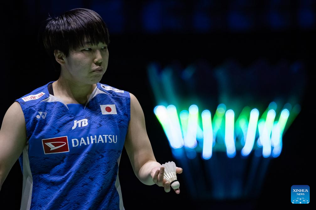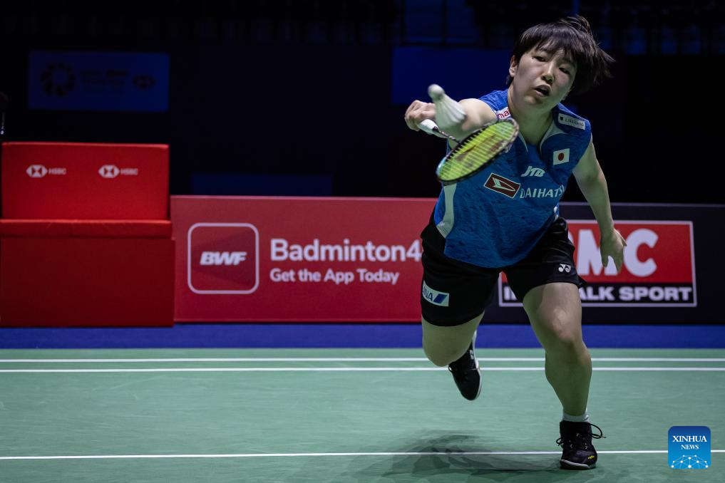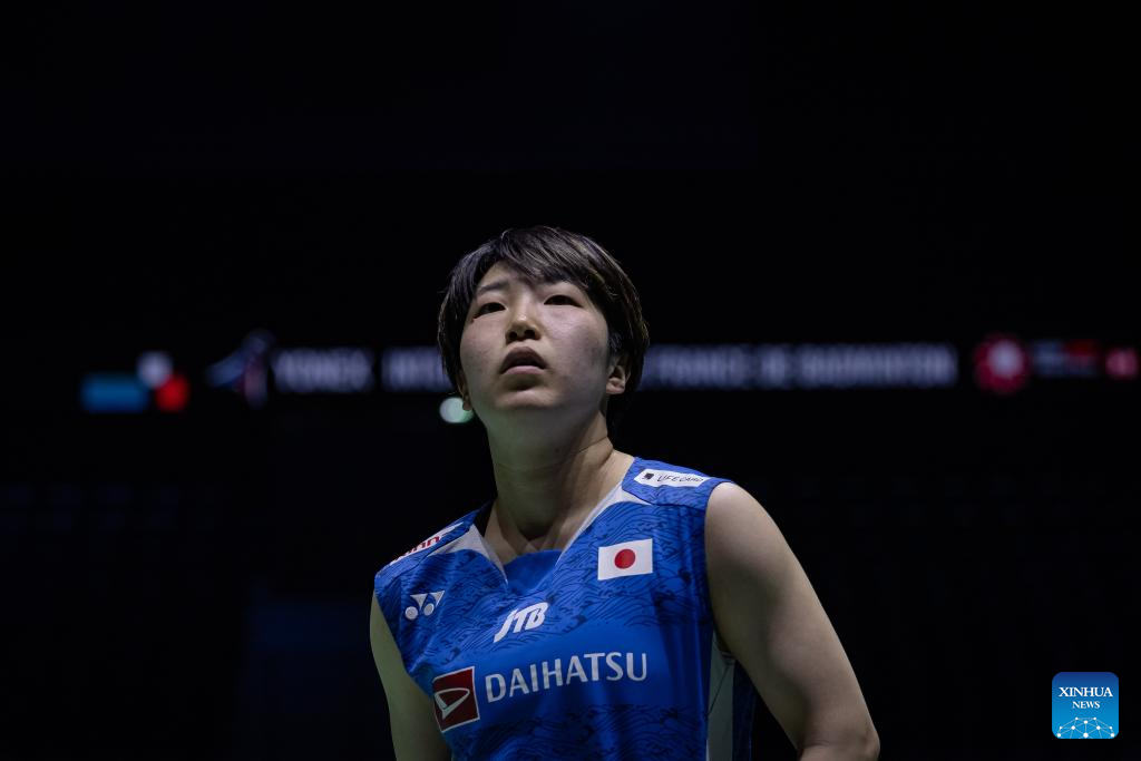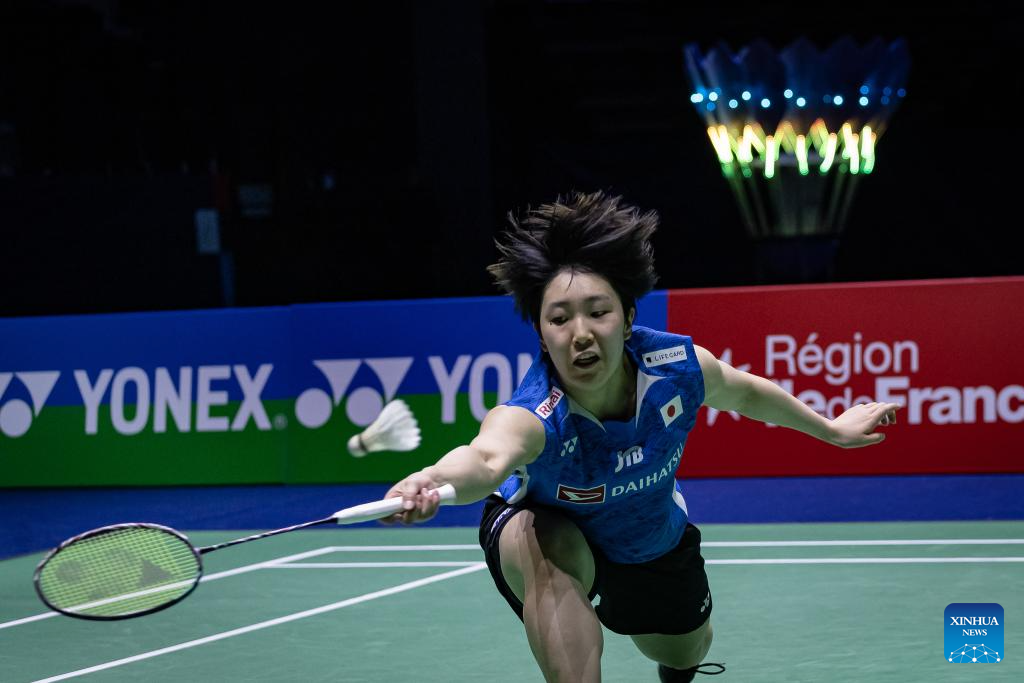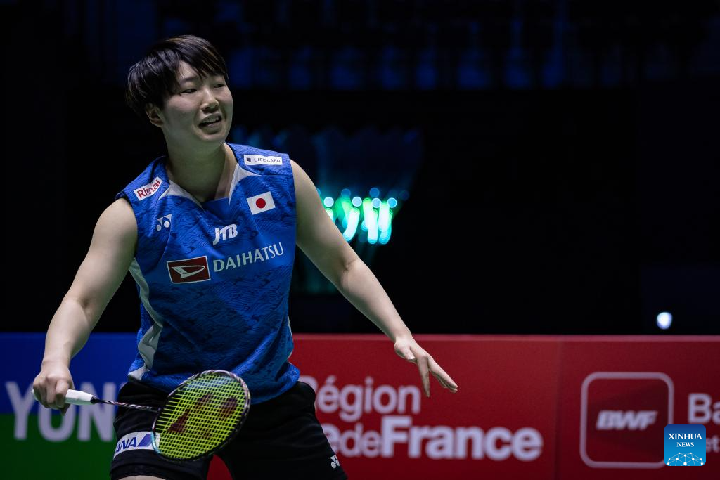 Yamagushi Akane of Japan competes during the women's singles quarter-final against Zhang Yiman of China at the Yonex French Open Badminton tournament in Paris, France, March 8, 2024. (Photo by Aurelien Morissard/Xinhua)