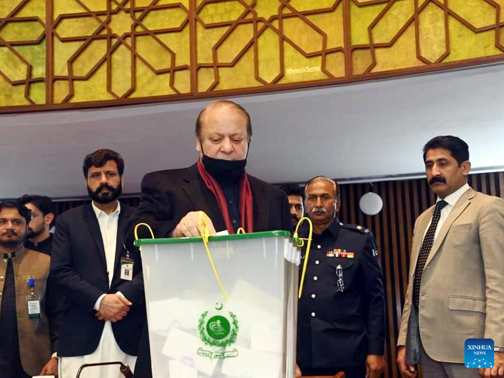 Photo released by Pakistan's Press Information Department (PID) on March 9, 2024 shows former Pakistani Prime Minister Nawaz Sharif casting his vote during the presidential election in Islamabad, capital of Pakistan. Ruling coalition candidate Asif Ali Zardari won the presidential election of Pakistan with an overwhelming lead on Saturday, the Election Commission of Pakistan announced. (PID/Handout via Xinhua)